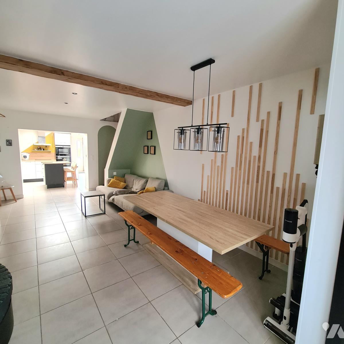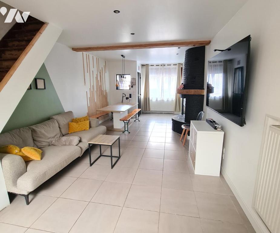 PERENCHIES Maison à continuer à rénover avec jardin et garage offrant 95 m² de surface habitable. Elle dispose d'un rez-de-chaussée rénové avec une entrée, un séjour-salon avec un poêle à pellets donnant sur une cuisine équipée (2023) et d'une salle de douche avec wc. Aux étages : 3 chambres, un grenier et des combles. Un jardin de 200m² et au fonds du jardin un garage à construire.